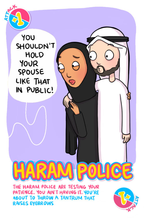 Although a fun party game, there is some strategy to it. Each card in the game simulates real-life problems that Muslims face on a daily basis.
