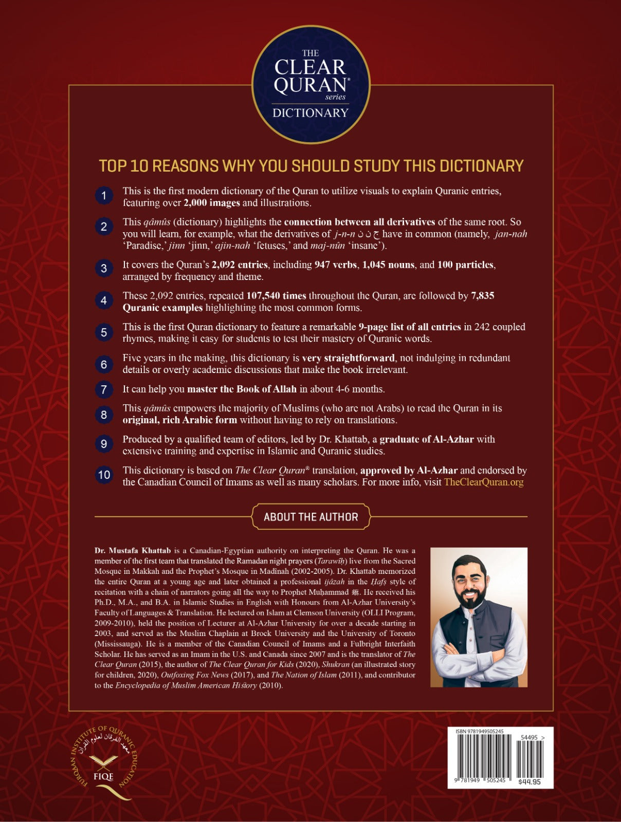 Dr. Mustafa Khattab is a Canadian-Egyptian authority on interpreting the Quran. He was a member of the first team that translated the Ramadan night prayers (Tarawîḥ) live from the Sacred Mosque in Mecca and the Prophet’s Mosque in Medina (2002-2005). Dr. Khattab memorized the entire Quran at a young age and later obtained a professional ijâzah in the Ḥafṣ style of recitation with a chain of narrators going all the way to Prophet Muḥammad ﷺ. He received his Ph.D., M.A., and B.A. in Islamic Studies in English with Honours from Al-Azhar University’s Faculty of Languages & Translation. He lectured on Islam at Clemson University (OLLI Program, 2009-2010), held the position of Lecturer at Al-Azhar University for over a decade starting in 2003, and served as the Muslim Chaplain at Brock University (2014-2016) and UTM (2019-2021). He is a member of the Canadian Council of Imams and a Fulbright Interfaith Scholar. He has served as an Imam in the U.S.A. and Canada since 2007 and is the translator of The Clear Quran (2015), the author of The Clear Quran® for Kids (2020), The Clear Quran® Dictionary (2021), Shukran (an illustrated story for children, 2020), The Nation of Islam (2011), and Outfoxing Fox News (2017), and contributor to the Encyclopedia of Muslim American History (2010).